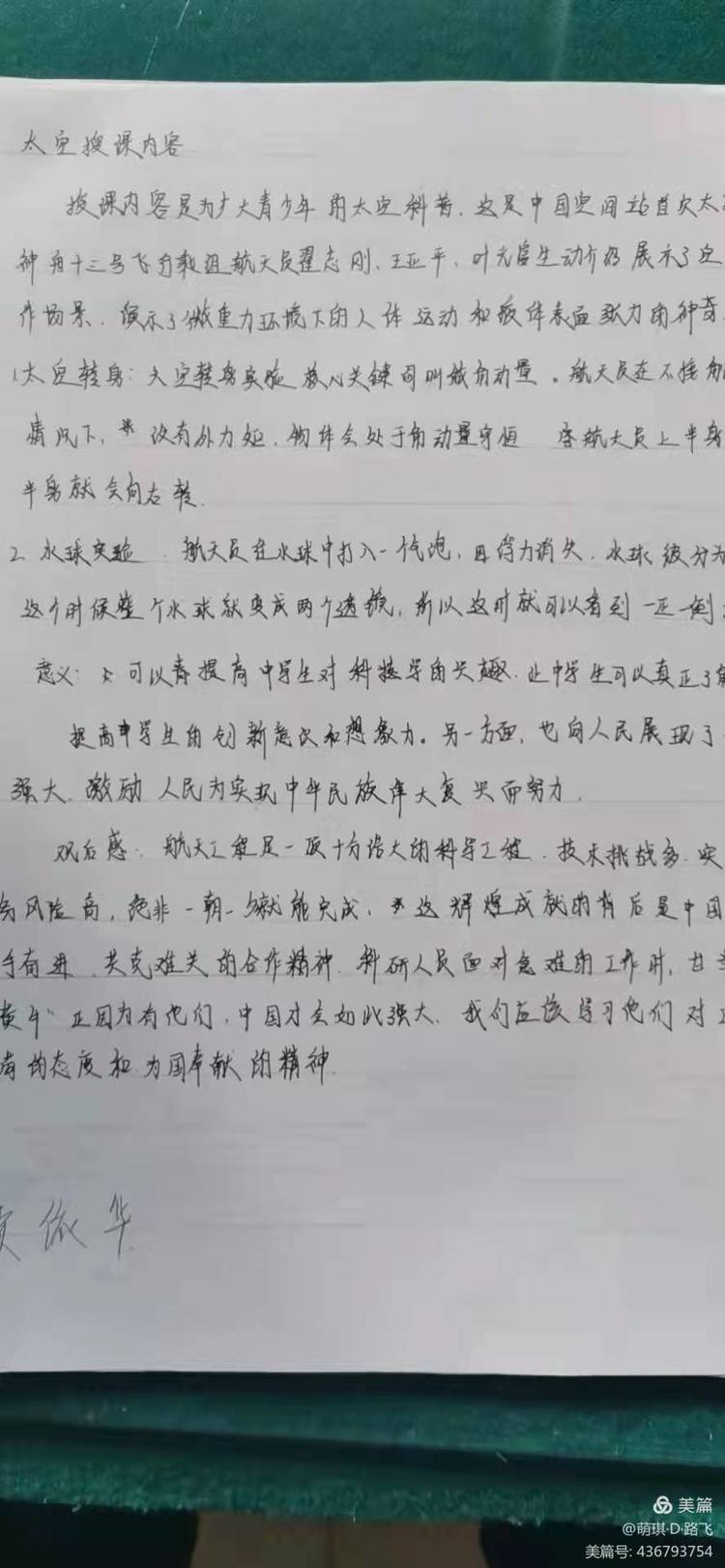 古往今来,人们对于太空的向往从未停止,而如今,随着科技不断地飞速发展,人们对于太空的探索更为热情。翟志刚、王亚平、叶光富三名优秀的宇航员在我国太空空间站进行了生动的太空第一课,传播载人航天知识,激发广大青少年科学兴趣,同学们观看后倍感鼓舞。