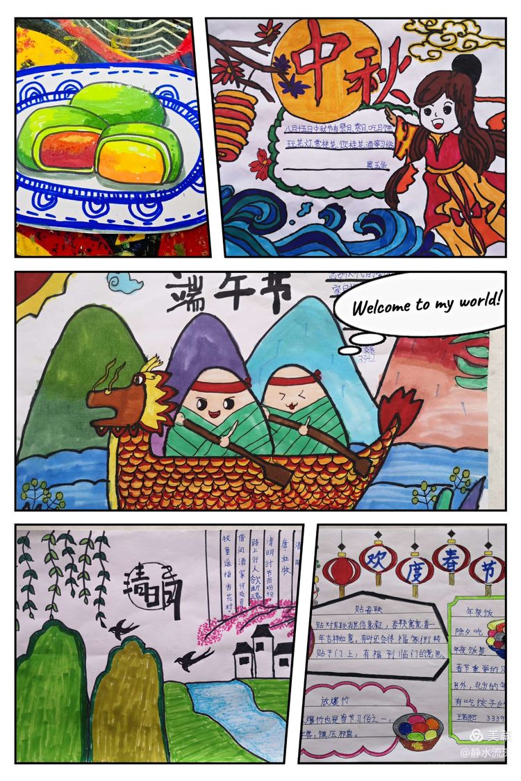 手抄报是必不可少的表现形式,图文并茂,喜闻乐见中传递着传统节日的浓厚气息。