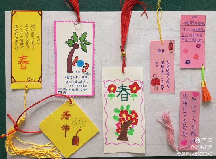 爱阅读的孩子更是忘不了为自己、为同学做一枚精致的传统节日书签,清新脱俗,别有一番韵味!