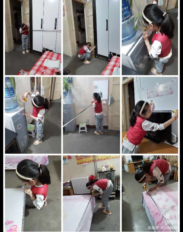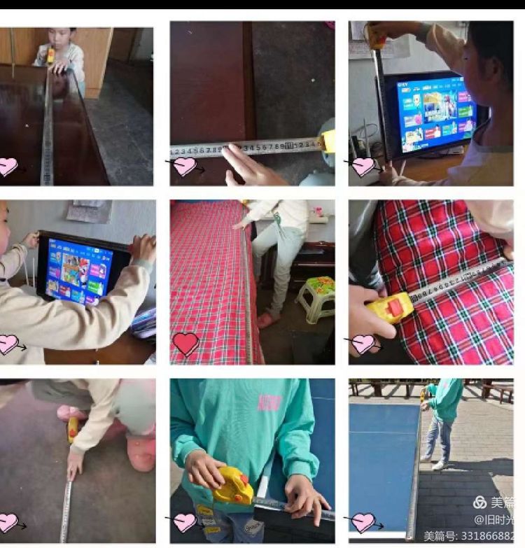 同学们测量物品的种类非常丰富,有床、电冰箱、电视机、餐桌等等,看他们认真测量的样子是不是很美?