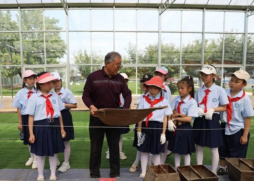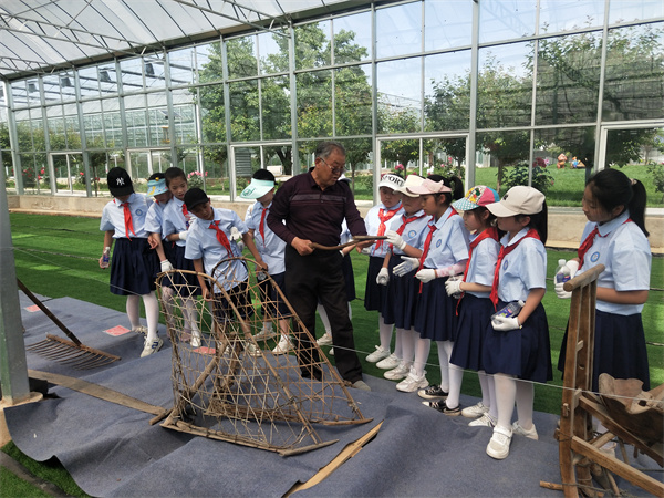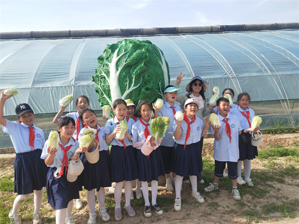 活动中,孩子们在农业科技专业辅导员的带领下认识了阳光温室、传统农具等农业设备,学习了水培种植、无土栽培等农业技术,认识了西红柿的生长特性、生长周期等。通过亲身体验农业用具的使用、亲手采摘娃娃菜等劳动实践,让孩子们在劳动中体会到粒粒皆辛苦的艰辛。