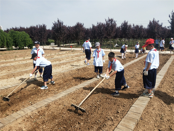 随后,孩子们来到学校的二分田里锄地、松土、浇水、施肥,体验农耕的快乐。他们脸上洋溢着难以抑制的快乐和幸福,整个实践基地都充满着欢声笑语。