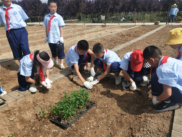 为进一步贯彻落实教育部《义务教育劳动课程标准(2022年版)》的要求,培养学生热爱学校、热爱生活、热爱劳动的意识,感受劳动带来的喜悦。5月17日,咸阳市高新一中组织小学部的孩子们走进秦都区中小学劳动教育实践基地,在田间课堂打卡,与大自然亲密接触,体验农耕、锄草松土、播种栽苗等劳动的快乐。