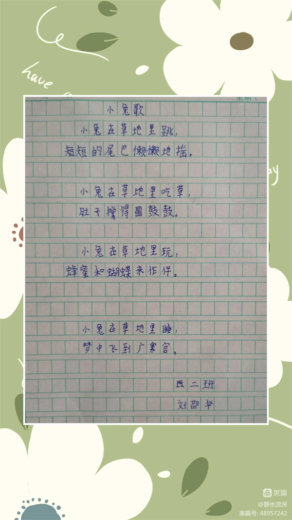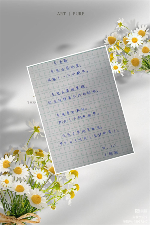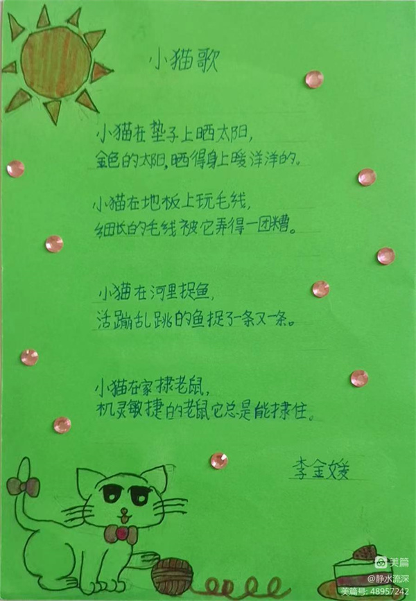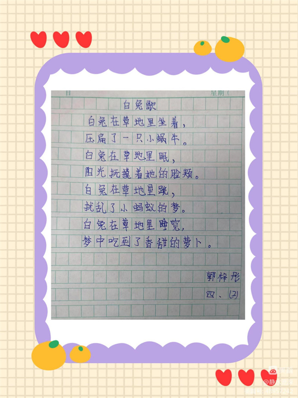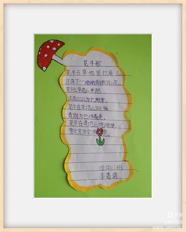 当徐志摩的一首《花牛歌》与四年级的孩子们相遇,当童真与诗意相遇,我们的小小诗人也跃跃欲试,他们用最纯真的视角,最童趣的语言,最天马行空的想象,简单真挚的为我们打开新的诗歌的大门。