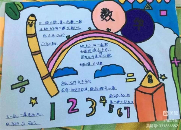 数学小报需要孩子们把零散的知识系统化,孩子们将所学知识点与精美的插图,优美的文字完美结合,让书本上枯燥的知识点跃然纸上,一下子变得生动有趣起来。下面,请欣赏的同学们创造出来的一幅幅图文并茂的数学小报吧!