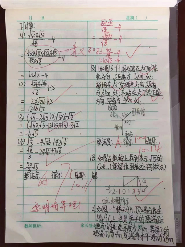 作业是师生之间的交流和碰撞!老师们精心分层设计习题,细心批改,用心激发学生,耐心叙写批语,学生们认真对待、收获满满。通过检查反馈,能促进教师们互相借鉴学习,实现智慧共享,落实好每一项教学常规,踏实做好每一项教学工作,就能收获累累的硕果。