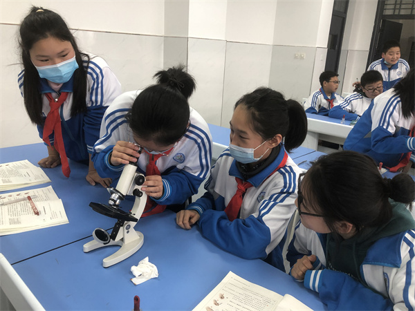 生物是一门集实验性、实践性及科学性于一身的自然科学。近期,咸阳市高新一中初中部生物备课组设计了“显微镜下的神奇世界”的学生活动。旨在激发学生的学习兴趣,调动学生学习生物学知识的积极性,进一步培养学生生物学操作技能和科学的实验方法,提高学生学生分析问题和解决问题的能力,以及培养学生团结合作、互相帮助的团队精神。