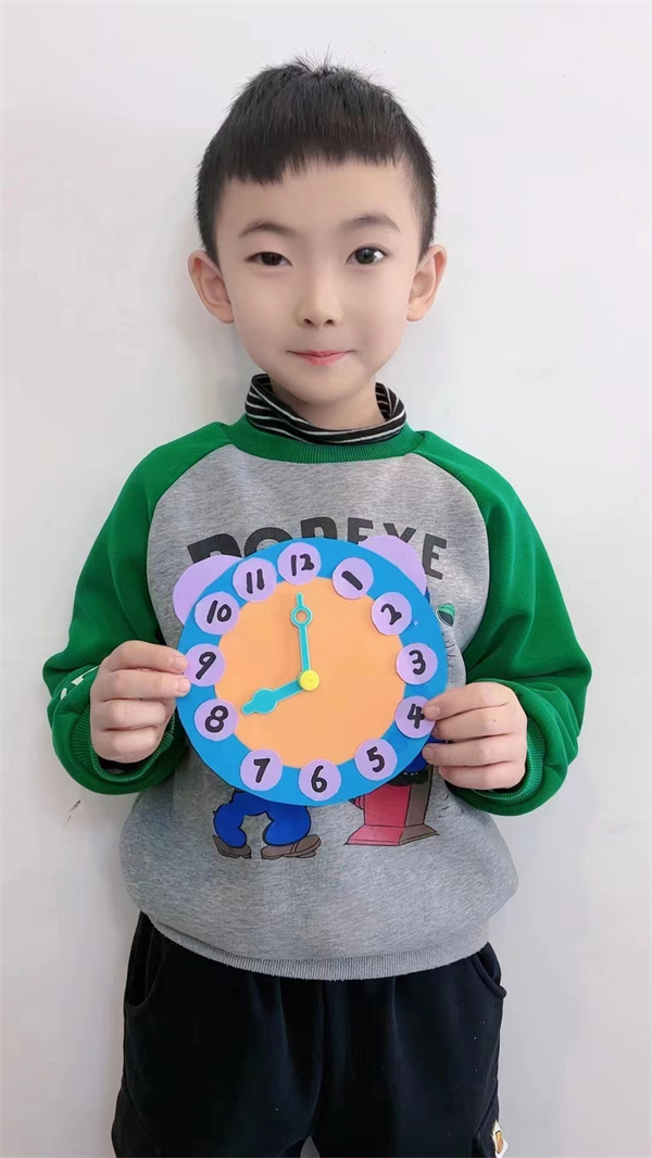 数学组的老师们为孩子们精心准备了“时钟趣多多”主题实践作业,将寒假生活的点滴与学生所学的数学知识相联系,根据数学所学知识的需要,积极制作数学学具,让学习充满数学趣味。让我们来欣赏同学们的智慧吧!