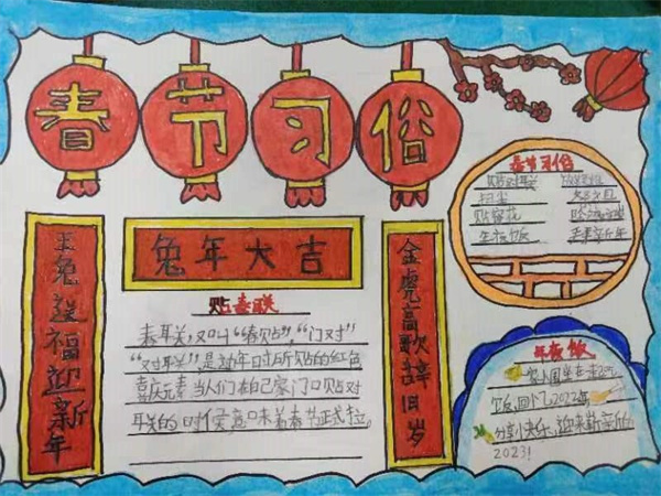 为让学生度过一个充实且有意义的寒假,全面提升学生的假期生活质量,上学期期末,一年级组的老师根据学生的特点和需求,积极响应“双减”政策,按照假期部署,设计了丰富多彩、形式多样的寒假特色作业,为学生提供展示素养的舞台。新学期伊始,孩子们带着满满的收获与期待回到了校园。一份份作品尽展学生才华,一幅幅画作尽显学科特色。我们一起来欣赏孩子们的成果展吧!