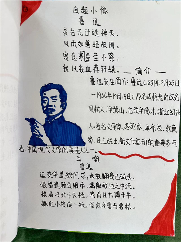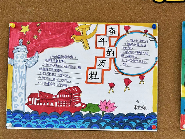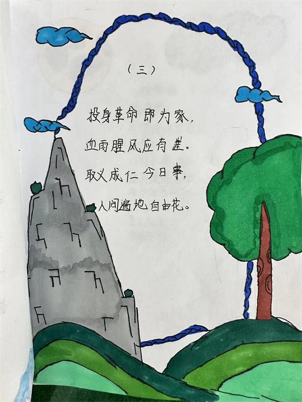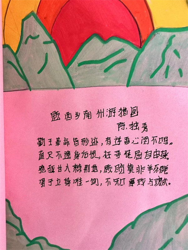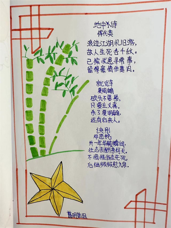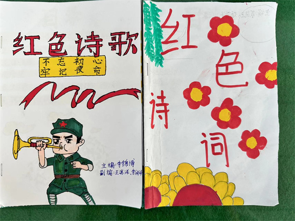 同学们心怀对革命先辈的敬仰和对中国共产党人坚韧不拔的大无畏精神的赞美,搜集了无数蕴涵着深厚的革命情怀的红色诗词,小组合作制作了精美的《红色诗集》。