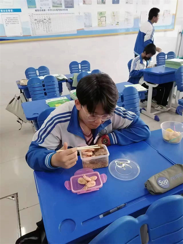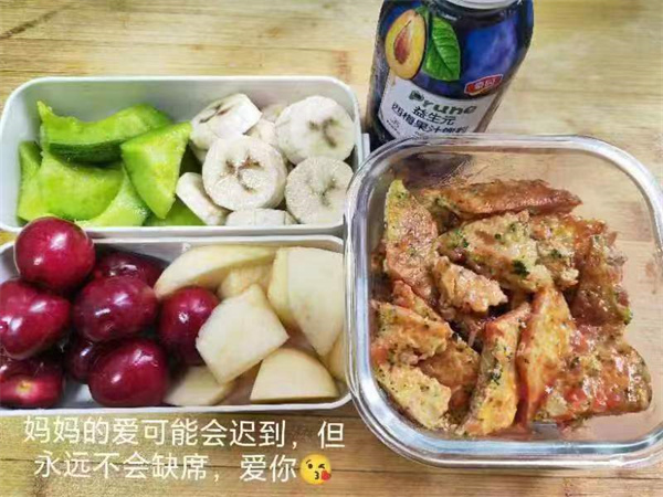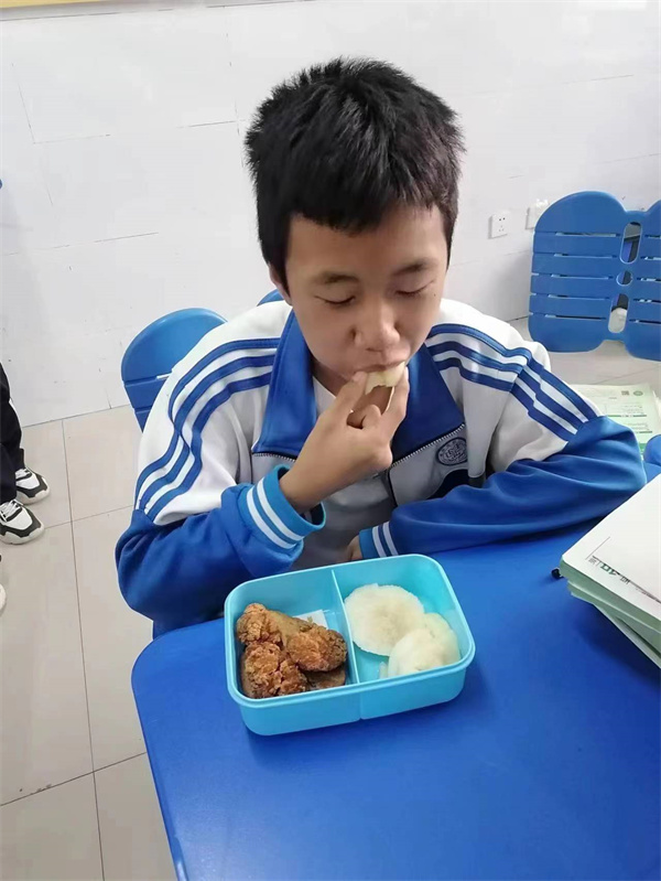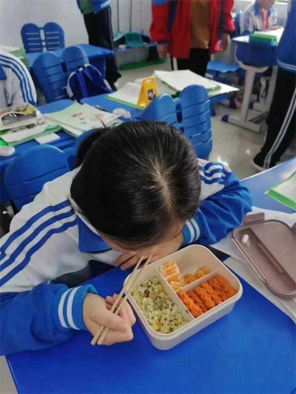 三节课后,到了课间加餐时间,教室里有美食等待——那是妈妈带的爱心便当哦!