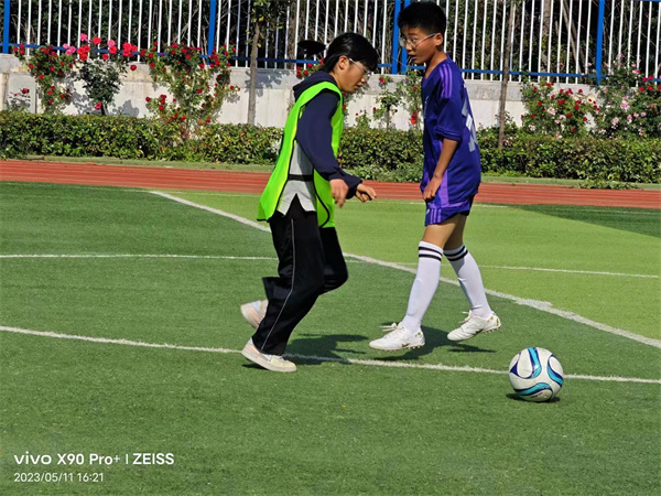 队员们凭借精湛球艺、娴熟的脚法、默契的配合赢得阵阵喝彩,无论是出色的防守还是迅猛的攻势,迎来了围观师生的阵阵掌声;每一次的破门得分都把比赛推向高潮,引来场边观众的热情助威呐喊。