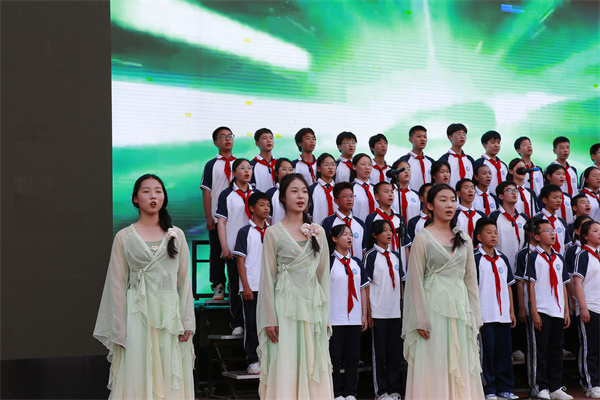 各班精彩的班歌演唱,充分展示了班级的凝聚力和向心力。自选节目更是形式多样、创意十足,通过深情的歌曲演绎、激昂的朗诵抒发对党和祖国的热爱,还有的班级将演唱与舞蹈完美融合,给观众带来了一场场视听盛宴。