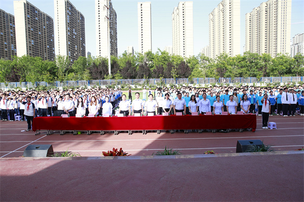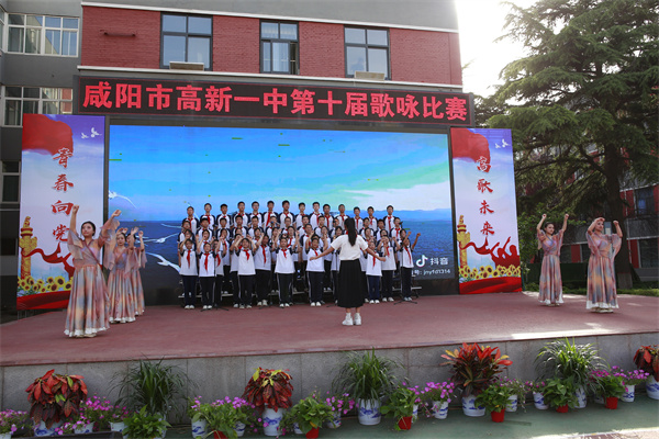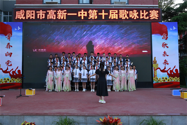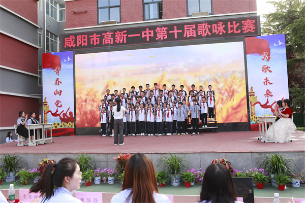 在这个孕育希望、放飞理想、展示青春风采的五月,为丰富校园文化生活,营造积极向上的氛围。5月29日,咸阳市高新一中东操场热闹非凡,一场以“青春向党 高歌未来”为主题的初中部第十届歌咏比赛在这里隆重举行。咸阳市高新一中党总支书记、校长于建营,副校长程颖斌、杨东、李江河,工会主席王中社参加。