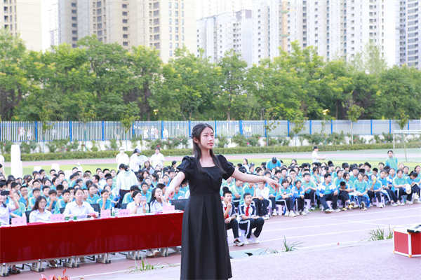 初中执行校长杨东致辞。中华民族以歌为伴,踏歌而行,一首首动人心弦的歌,流淌进每一个华夏儿女的血脉里,形成了高雅、豁达、乐观的民族基因,杨校长希望高新少年,唱出对班级、对校园、对祖国真挚的热爱,抒发我们的感情,凝聚人心,振奋精神,唱出凛然正气,唱出拼搏士气,唱出青春勇气。