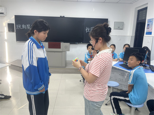 在拧转拨的娴熟转动中,魔方在指尖奏出了美妙的乐曲,大家看得见的是手指的转动,看不见的是思维的转动。