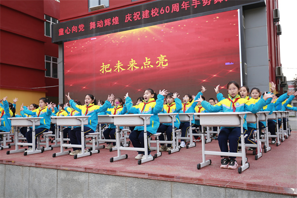 各班同学以灵动的手势、饱满的热情,诠释了对学校的热爱和对未来的美好向往。