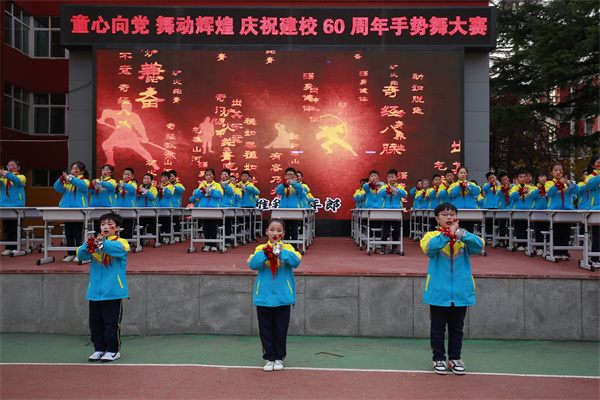 11月21日,在咸阳市高新一中全体师生的热切期待中,成功举办了以“童心向党 舞动辉煌”为主题的手势舞比赛。本次活动不仅是庆祝建校60周年的重要组成部分,也是全体师生展示青春风采、凝聚校园力量的一次盛大盛会,小学部四年级全体师生参加。