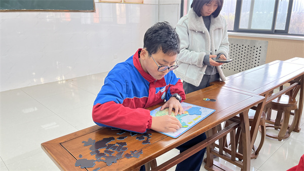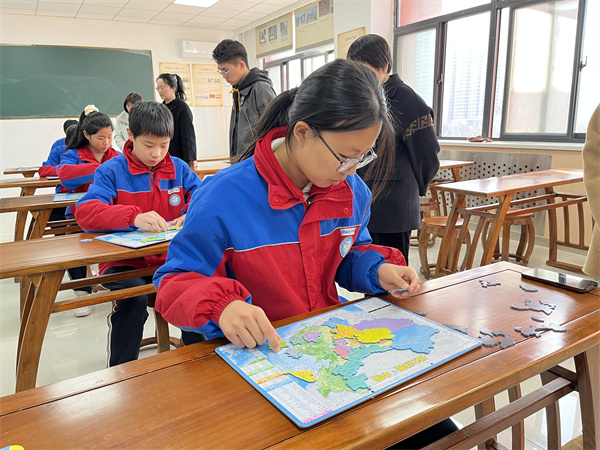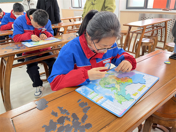 在知识的浩瀚海洋中,地理学科宛如一座神秘的岛屿,等待着我们去探索。为激发同学们对地理的兴趣,培养空间思维与动手能力,近日,咸阳市高新一中初中部政史地教研组举办了一场精彩绝伦的地理拼图大赛。活动现场气氛热烈,同学们热情高涨,用智慧和双手拼凑出了一幅幅绚丽的中国版图。