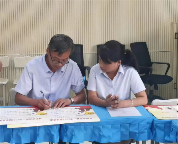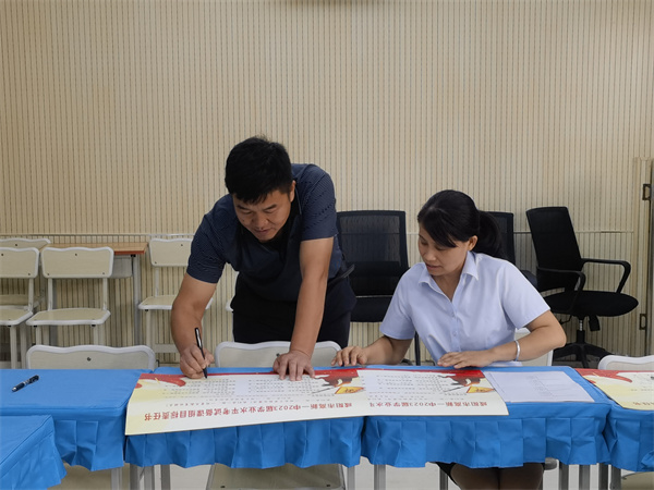 六位班主任和初三全体老师也相继在目标责任书上郑重签下自己的名字,并表示中考的战场已经开启,为了取得这场战役的胜利,一定会明确目标,狠抓常规,营造浓郁的学习氛围,发扬高新人不服输的精神,誓与学生共同前进,携手并肩再创新高。