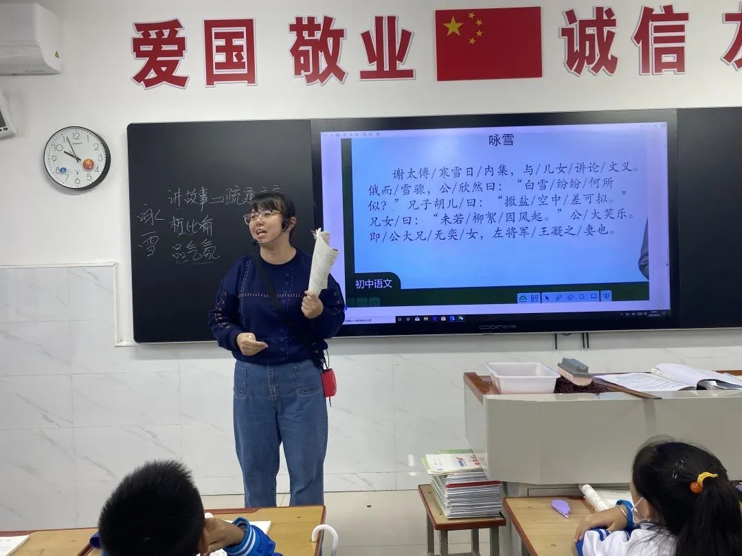 接下来,强白红老师用她动情的课堂把我们带入那个大雪纷飞却其乐融融的书香门第。她巧妙的利用文下注释理清人物关系,让故事从学生的口中娓娓道来。不必说那精彩的比喻分析,也不必说方法点拨的全面到位,但是那故事表演,足以让整节课堂妙趣横生。