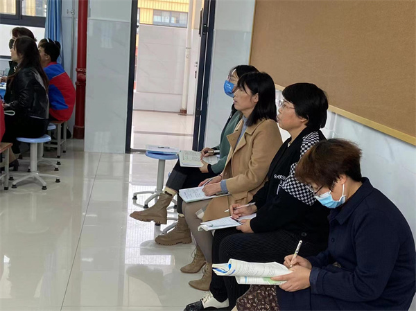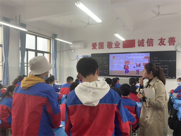 在评课环节,教研组长黄老师针对导入时间,设置问题,引导学生互动,分层设置等方面提出了一些可行性的建议和意见。