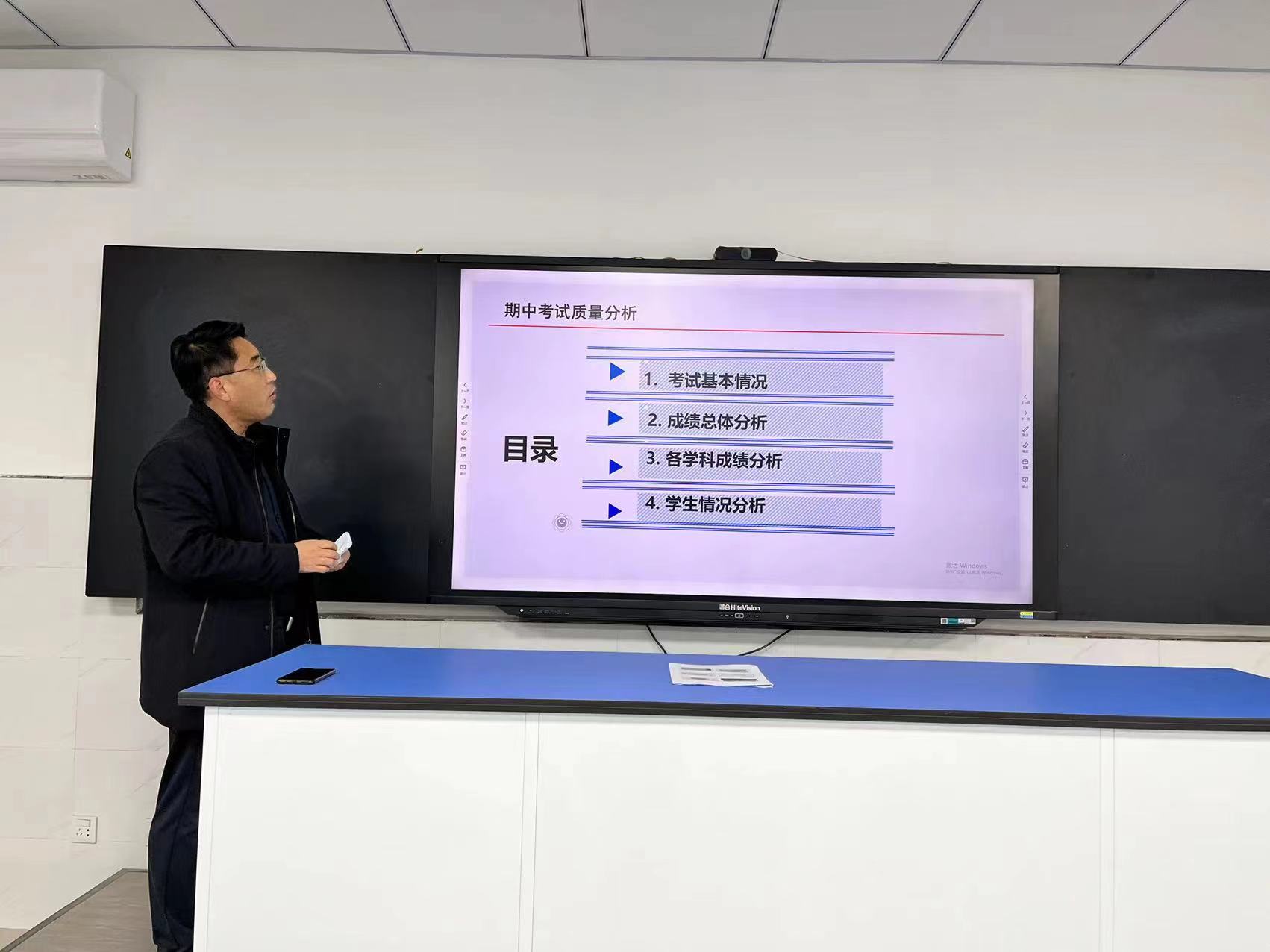 分析会上,高中部教导主任陈福民针对本次期中考试做全面透彻的分析,精准定位各班的优劣科目,分别将文、理科班的成绩与高考指标体系进行了对比,对各班各学科制订了具体分数目标,同时将本次期中考试中反映的问题进行了反馈,并提出了新的期望。