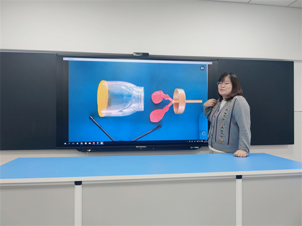 创新点:利用生活中比较常见的材料,制作出能够直观反映呼吸运动的教具。