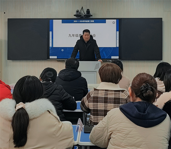 龚莉莉主任带领全体九年级老师分科目的对目前的教学质量现状进行了全方位的分析,对教育教学工作中存在的问题及其原因从教学管理,教师个人原因以及客观原因等因素进行了深刻分析,并在最后提出了今后努力的方向和改进措施。