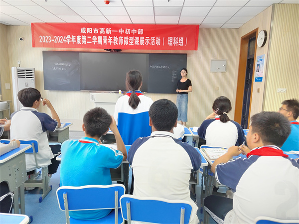 花木争荣秀,拔节正当时。为进一步深化课堂教学改革,规范教学常规管理 ,提升青年教师的专业能力,落实“聚焦课堂,减负提效”的目标,近日,咸阳市高新一中初中部举办青年教师微型课展示活动。