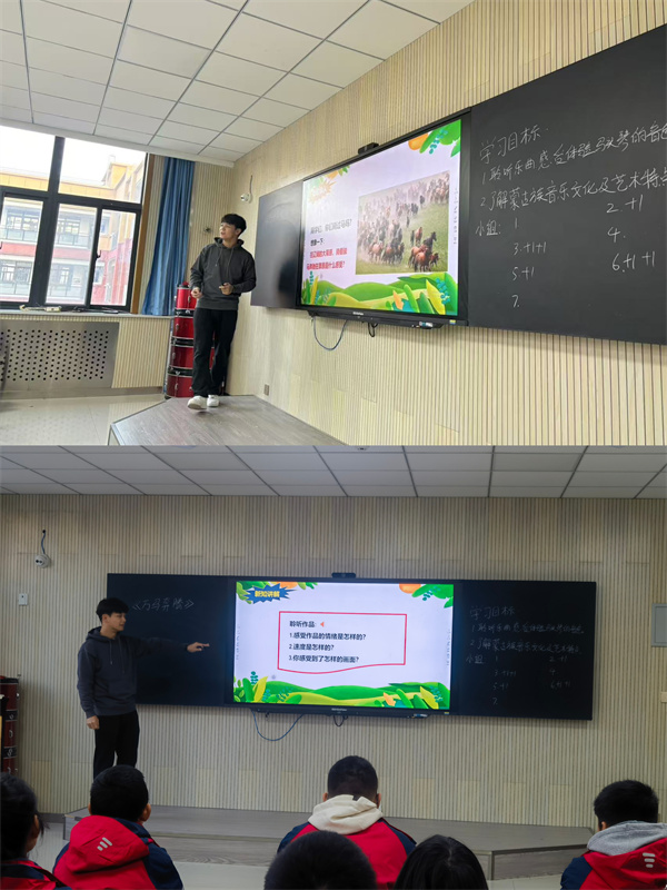 通过舞蹈视频及教师身着蒙古族服装,吸引学生注意力,引出蒙古族并介绍 提升学生兴趣 通过欣赏聆听,让学生感知音乐要素如情绪 节奏 节拍等,加深学生对音乐的理解,教师详细讲解节拍等知识点 由浅入深 让学生能充分掌握所学知识,通过示范演唱带领学生一字一句进行学习,学生能够快速掌握歌曲的知识点以及掌握歌曲演唱,通过歌曲学习 培养了学生的民族自豪感。