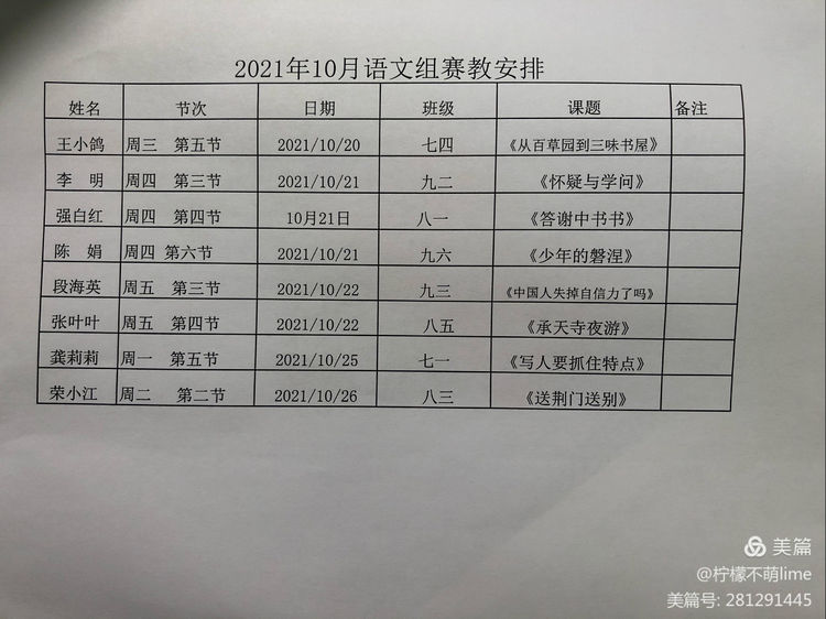 留香于语,留心于文。为了进一步加强教师教学交流,促进教师专业成长,有效提高教学质量,给教师展示自己风采的平台,咸阳市高新一中初中部语文组第一轮赛教活动开始了。