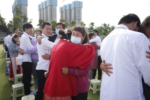 拥抱父母,感谢父母给予生命,感谢他们十八年来的辛勤付出;致敬老师,感谢老师们三年来的谆谆教导,细心培养。