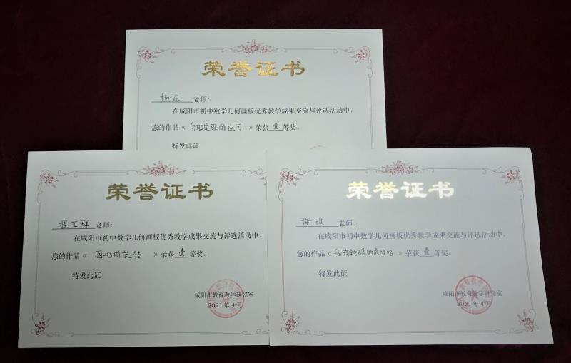近日,咸阳市高新一中教育科研工作再传捷报,6名教师的多项教学成果在咸阳市初中数学几何画板优秀教学成果交流与评选活动中获奖。