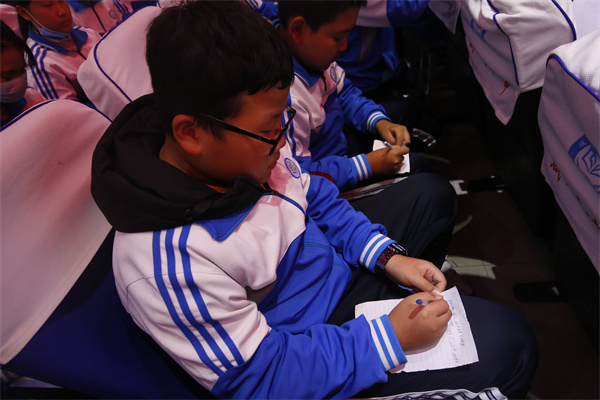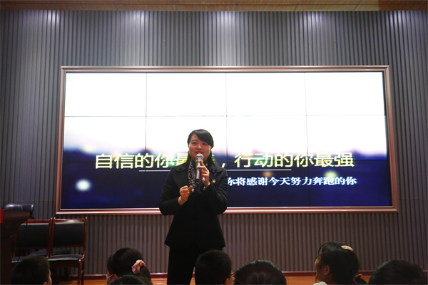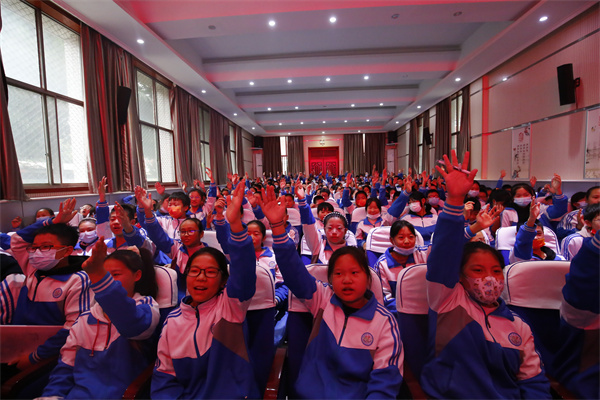 杨校长用“最帅飞行天团”翟志刚、王亚平和叶光富的故事让学生明白年龄、性别、出身都不是放弃尝试的借口,要永远相信,努力读书,不设边界、脚踏实地,才能仰望星空,实现梦想。学生用热烈地掌声回应,表明自己努力奋斗的决心。