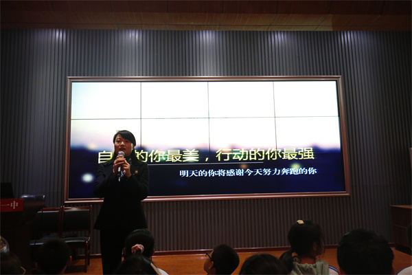 首先,咸阳市高新一中初中部校长杨东为同学们带来一场精彩的报告《自信的你最美,行动的你最强》,从四个方面激励学生沉潜青春,薄发青春。