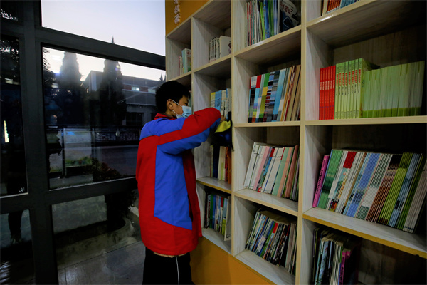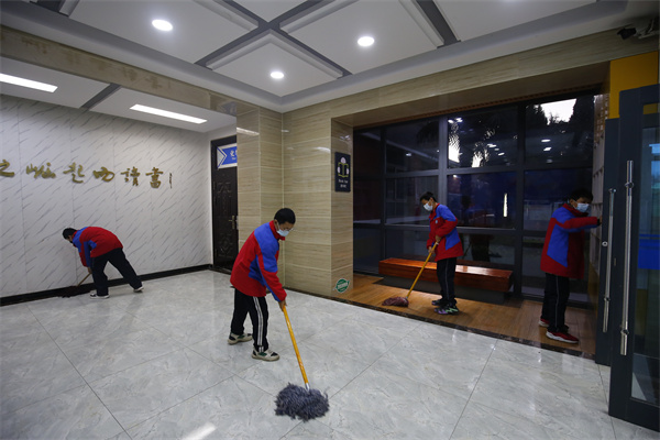初中部的学生们自觉开展爱国卫生运动,他们手拿扫把、簸箕,把校园清扫的干干净净,用自己的实际行动表达着拳拳的爱国情和坚决的抗疫心。