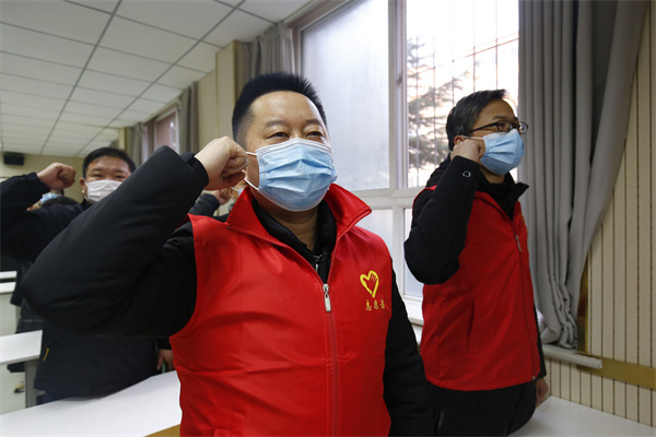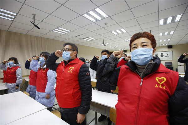 20日上午一大早,全体党员干部迅速集合,面对疫情做出庄严宣誓。