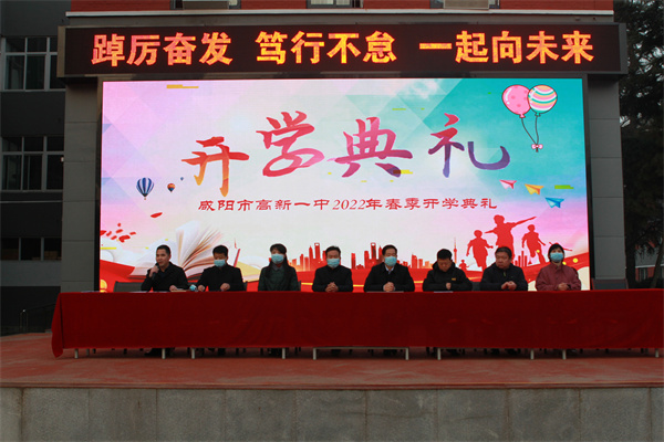从春天出发,携手向未来。2月21日上午,咸阳市高新一中4000名师生齐聚操场,带着灿烂的笑脸,怀着激动的心情,隆重举行2022学年度春季开学典礼。咸阳市高新一中党总支书记、校长于建营,副校长景晓、廖荣、杨东、文广俊、李江河,校团委书记王中社、少先队大队辅导员冯娟等出席典礼。活动由副校长程颖斌主持。