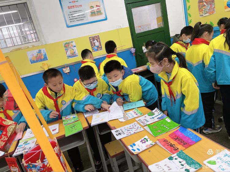 孩子们做的认真 ,前来欣赏的同学们就更专注,他们不仅要看每一件作品的工艺,更要体会每一个制作者的精心付出。那赞许的目光、肯定的神情,使人看着心里暖暖的。