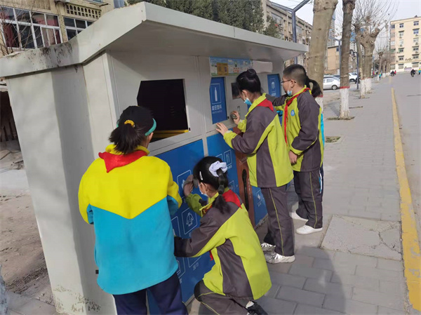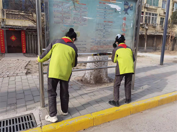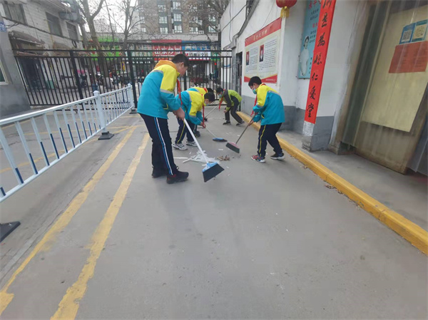 在大家的共同努力下,校门口的道路变得干净整洁,健身器材也变得明光锃亮。旁边的行人们纷纷称赞,投来赞许目光。
