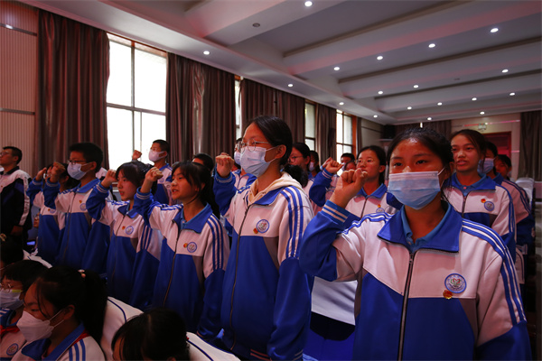 为深入贯彻习近平新时代中国特色社会主义思想,弘扬五四精神,号召广大团员青年以实际行动“喜迎二十大 永远跟党走 奋进新征程”,5月10日,咸阳市高新一中组织广大团员团干部、少先队员、青年学生收听收看庆祝共青团成立100周年大会暨少先队员离队入团仪式。