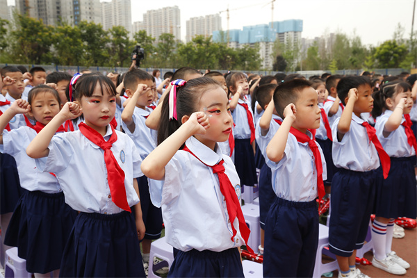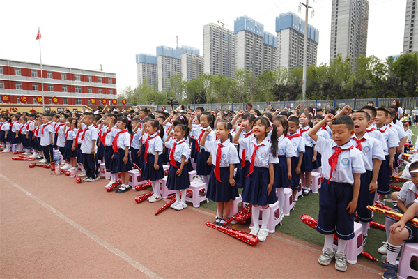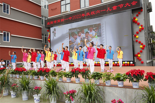 儿童是祖国的花朵,是民族的未来和希望。5月31日上午,在“六一”国际儿童节到来之际,咸阳市高新一中隆重举行少先队入队仪式暨“庆六一”文艺汇演。操场上人声鼎沸,格外热闹,孩子们齐聚一堂,洋溢着灿烂的笑容,挥舞着手中的气球,共同庆祝属于自己的节日,喜迎党的二十大胜利召开。