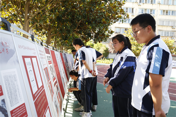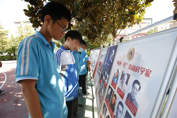 课间,初、高中的学生们也纷纷来到展板前,一起领略感悟科学家们的工匠精神。