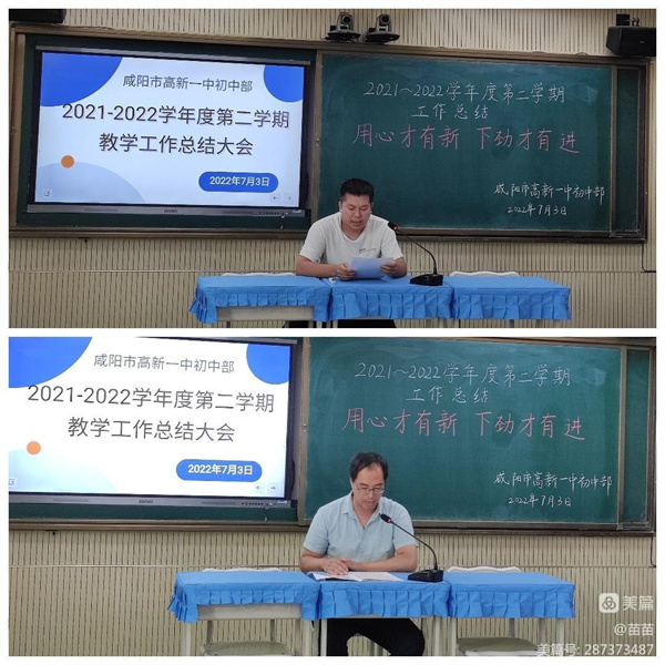 七月是教育收获的季节,本学期的教育教学工作已落下帷幕。“吾日三省吾身”,一学期的工作经验更需要总结反思,从而为后期的工作指明方向。7月3日,咸阳市高新一中初中部召开期末工作交流总结会。会议由教研主任龚莉莉主持。