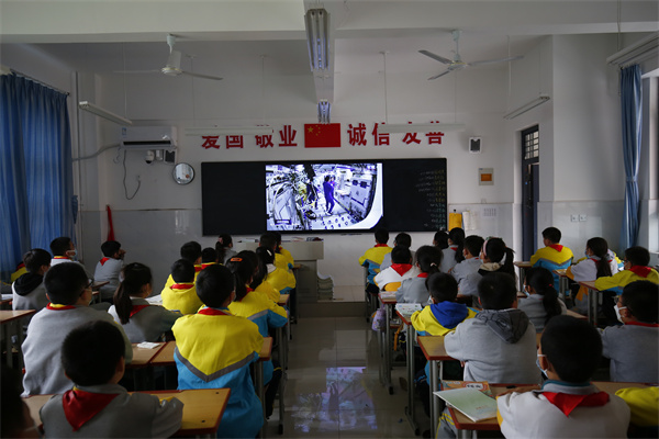 通过观看天宫课堂,让同学们直观的感受到了国家航空航天科技的先进和祖国的伟大,让他们从小树立远大的航天梦,同时也进一步坚定了孩子们的爱国情、强国梦、报国志,为喜迎党的二十大胜利召开营造了浓厚的校园氛围。