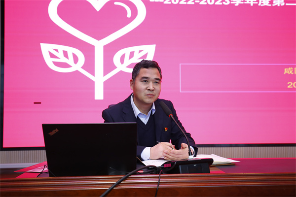 副校长李江河以《强化引领 促进融合 实现高质量发展》为主题,对2022-2023学年度第二学期党建工作要点作了具体安排。