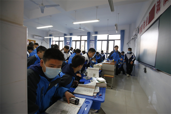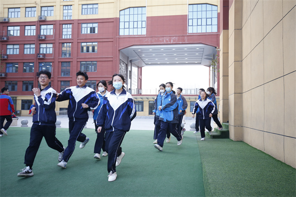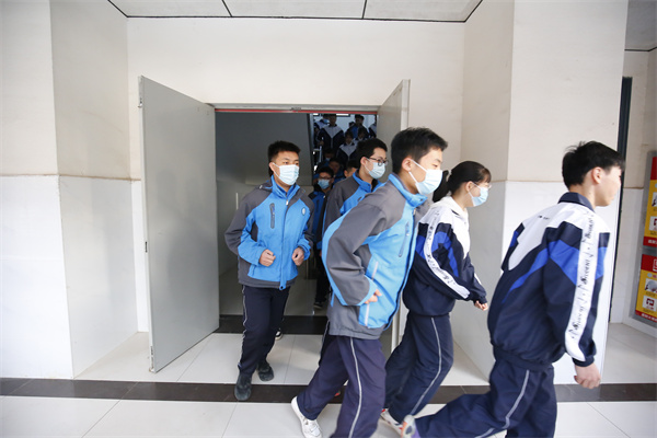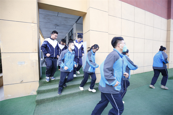 7点47分,随着警报声响起,高中部1000余名师生有序地撤离到学校操场,从警报声响起到最后一名学生撤离到操场,用了2分30秒。