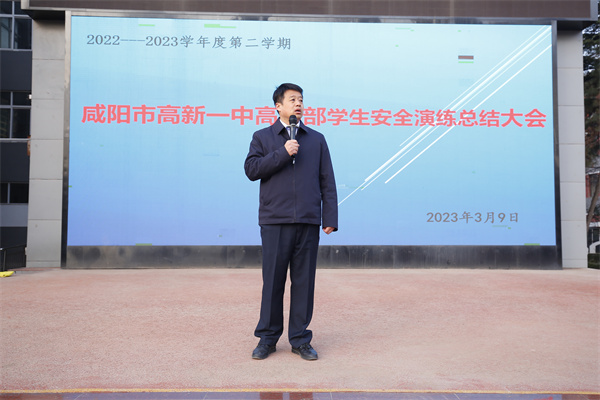 高中部教导主任陈福民就此次演练进行总结发言,对演练过程中老师们沉着镇定、恪尽职守,同学们临危不惧、戮力同心的精神进行充分肯定。