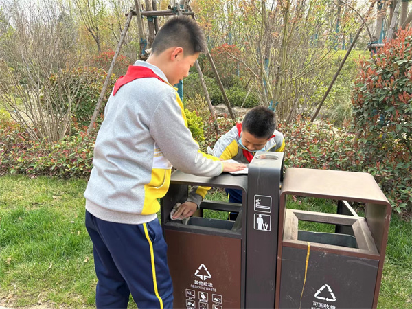 公园里老人在自娱自乐,孩童在欢快追逐。高新少年穿梭其中,他们或是捡拾草丛中的纸屑;或是擦洗休闲走廊里的桌凳,每一个角落都有他们小小的身影,用他们的双手维护着公园各类公共设施的卫生。